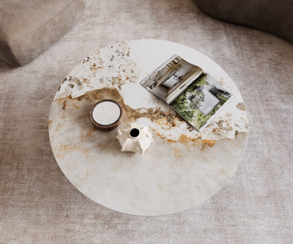 Perfektne sadne k tebe – okrúhly konferenčný stolík Edge z keramiky Minas Melange