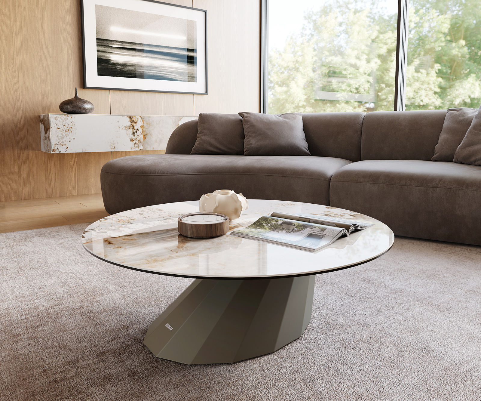 Perfektne sadne k tebe – okrúhly konferenčný stolík Edge z keramiky Minas Melange