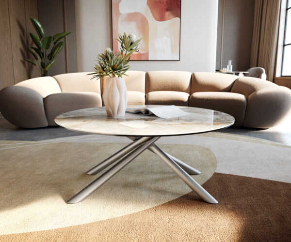 Konferenčný stolík Edge okrúhly 90×90 cm keramika Minas Melange Sarity nerezová oceľ kefovaná
