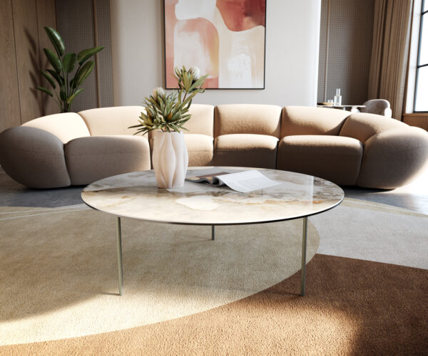 Perfektne sadne k tebe – okrúhly konferenčný stolík Edge z keramiky Minas Melange