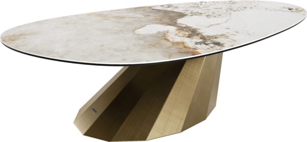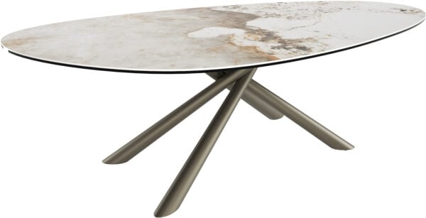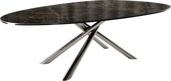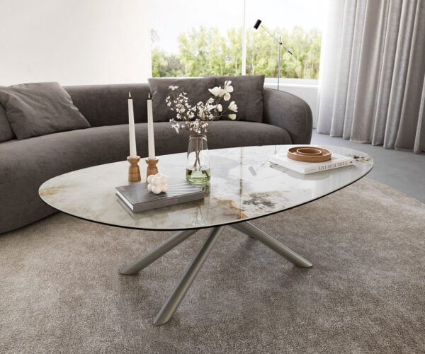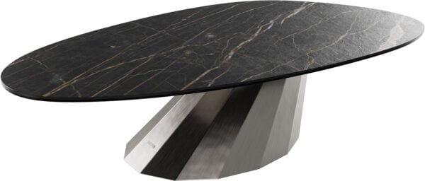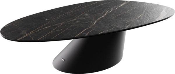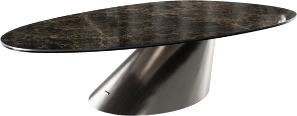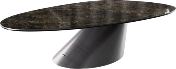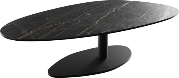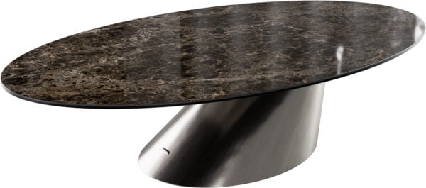 Oválny keramický stolový doska Laminam® s hladkou textúrou zo série konferenčných stolíkov Edge premení vašu obývačku na skutočné centrum života. Kvalitná keramika z Talianska v príjemnom hnedom odtieni Noir Desir so štruktúrovanou textúrou nie je len vizuálnym lákadlom, ale je tiež známa svojou odolnosťou a pevnosťou.
