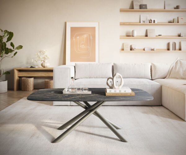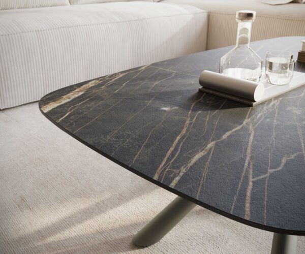 Tvoj nový vysnívaný stolík – konferenčný stolík Edge z Laminam® keramiky Noir Desir v hnedom odtieni v oválnom tvare