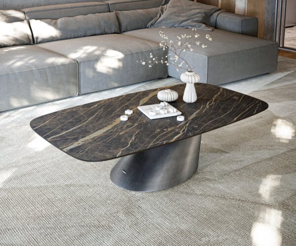 Tvoj nový vysnívaný stolík – Edge konferenčný stolík z Laminam® Noir Desir hnedej keramiky v oválnom tvare