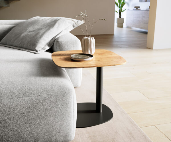 Konferenčný stolík Edge zaujme kvalitným spracovaním masívneho dubového dreva a výnimočným dizajnom, ktorý pritiahne všetky pohľady. Trendový oválny tvar masívnej stolovej dosky ponúka veľa miesta a vytvára zaujímavý kontrast k prírodným farebným odtieňom a jemnej štruktúre dreva. Prepracovaná švajčiarska hrana zužuje stolovú dosku smerom dole a zabezpečuje ľahký, takmer bezváhový vzhľad vo vašej obývačke.