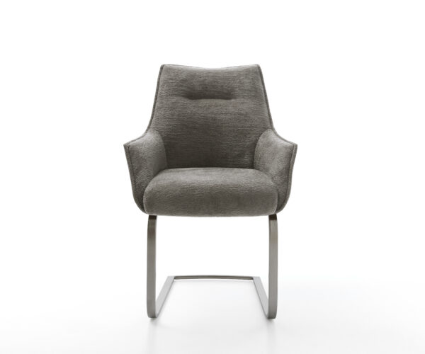 Jedálenská stolička Alja s opierkami vytvára vďaka svojmu vynikajúcemu dizajnu dokonalú harmóniu medzi tvarom a komfortom. Elegantné línie pôsobia nadčasovo a štýlovo. Prepracovaný záhyb v oblasti operadla upúta všetky pohľady na mäkko tvarované, vertikálne záhyby na vnútornej strane, ktoré krásne kontrastujú s okrúhlou a tvarovo pevnú vonkajšou stranou. Štíhle opierky na ruky pozývajú k pohodlnému sedenie. Výborné čalúnenie s integrovaným, mimoriadne kvalitným vreckovým pružinovým jadrom zabezpečuje, že už nikdy nebudete chcieť sedieť na inej čalúnenej stoličke ako na Alja s opierkami. Pretože Alja s opierkami je dizajn, kvalita a komfort v dychberúcom prevedení.