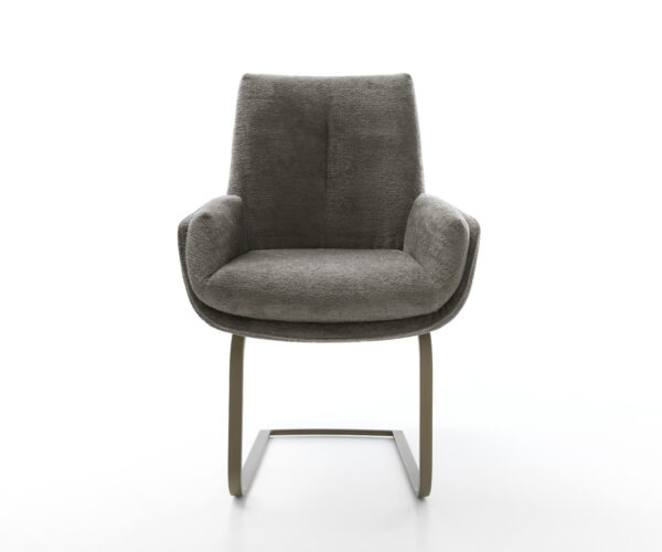 Táto stolička zaujme kvalitným poťahom z bouclé soft v teplom tmavobéžovom odtieni. Jemná štruktúra a pokojná farba dodávajú nábytku modernú, útulnú charizmu – ideálne do jedálne alebo čítacieho kútika.