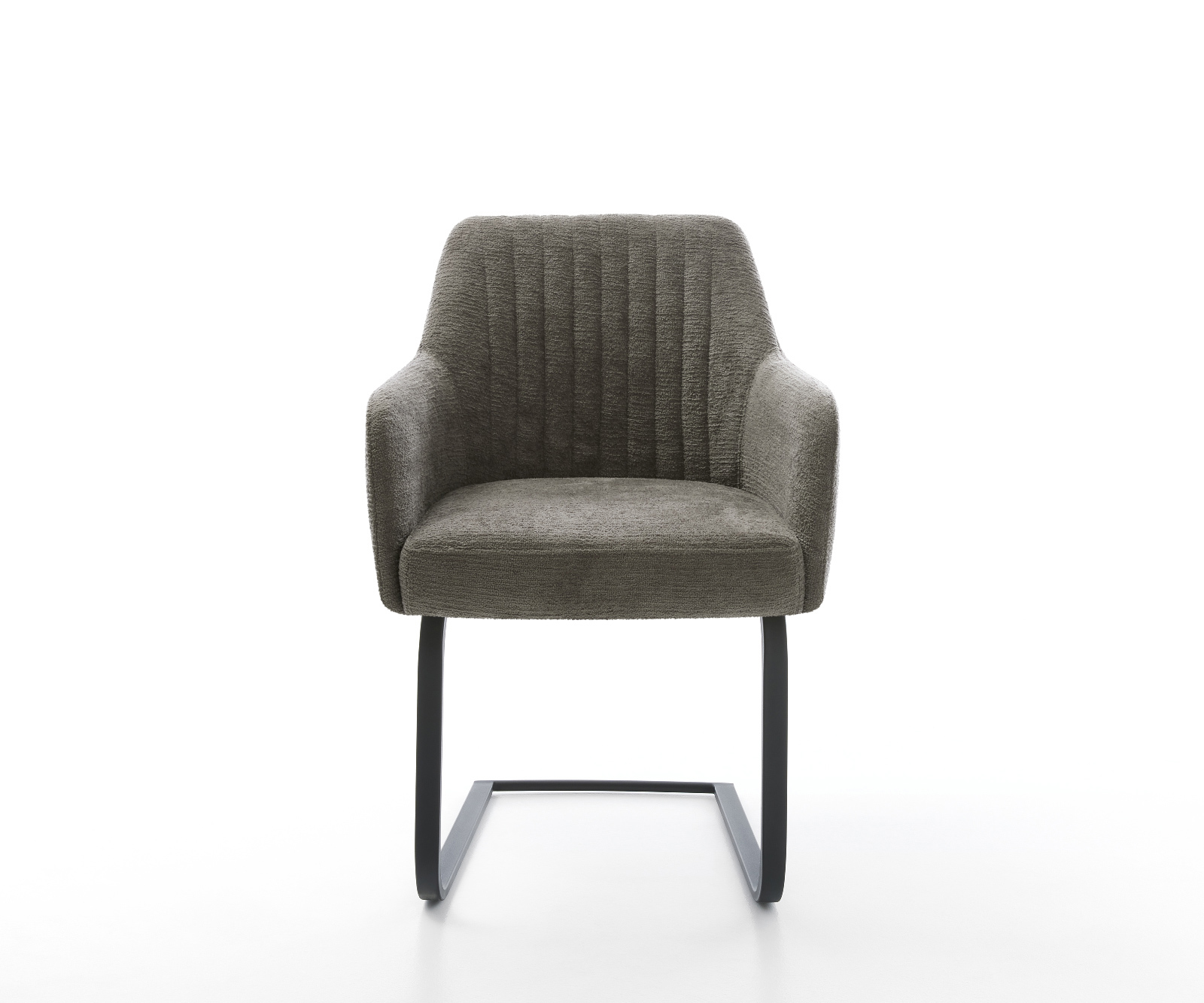 Táto stolička zaujme kvalitným poťahom z bouclé soft v teplom tmavobéžovom odtieni. Jemná štruktúra a pokojná farba dodávajú nábytku modernú, útulnú charizmu – ideálne do jedálne alebo čitárne.