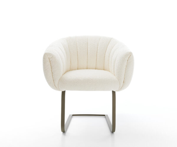 Elegantná látka bouclé je obzvlášť mäkká a príjemná na pokožku, zároveň však odolná a nenáročná na údržbu. Žiari v teplom bielom odtieni a v každej jedálni vytvára nadčasovo pekné akcenty.