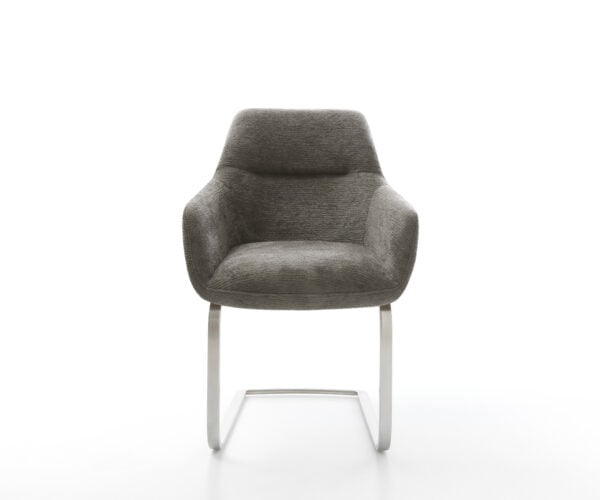 Táto jedálenská stolička presvedčí kvalitným poťahom z bouclé v teplom tmavobéžovom odtieni. Jemná štruktúra a pokojná farba dodávajú nábytku modernú, útulnú charizmu – ideálne do jedálne alebo čitárne.