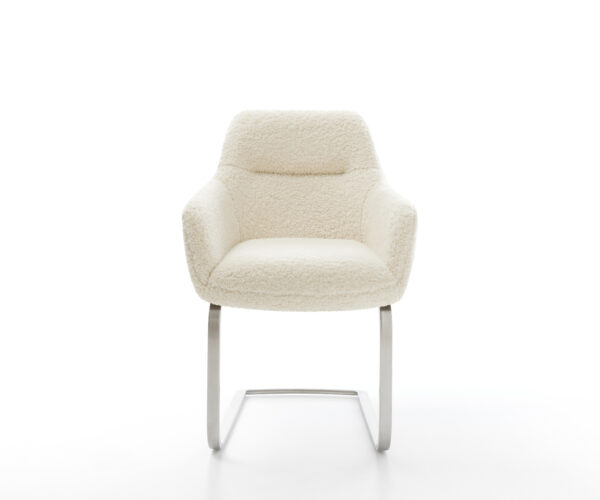 Čalúnenie z plyšovej teddy látky v béžovej farbe poskytuje mimoriadne príjemný pocit pri sedení. Mäkká látka prináša útulnosť a štýl k jedálenskému stolu – ideálne pre príjemnú atmosféru domova.