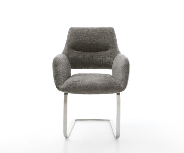 Táto stolička presvedčí vysokokvalitným poťahom z bouclé v teplom tmavobéžovom odtieni. Jemná štruktúra a pokojná farba dodávajú nábytku modernú, útulnú charizmu – ideálne do jedálne alebo čítacieho kútika.