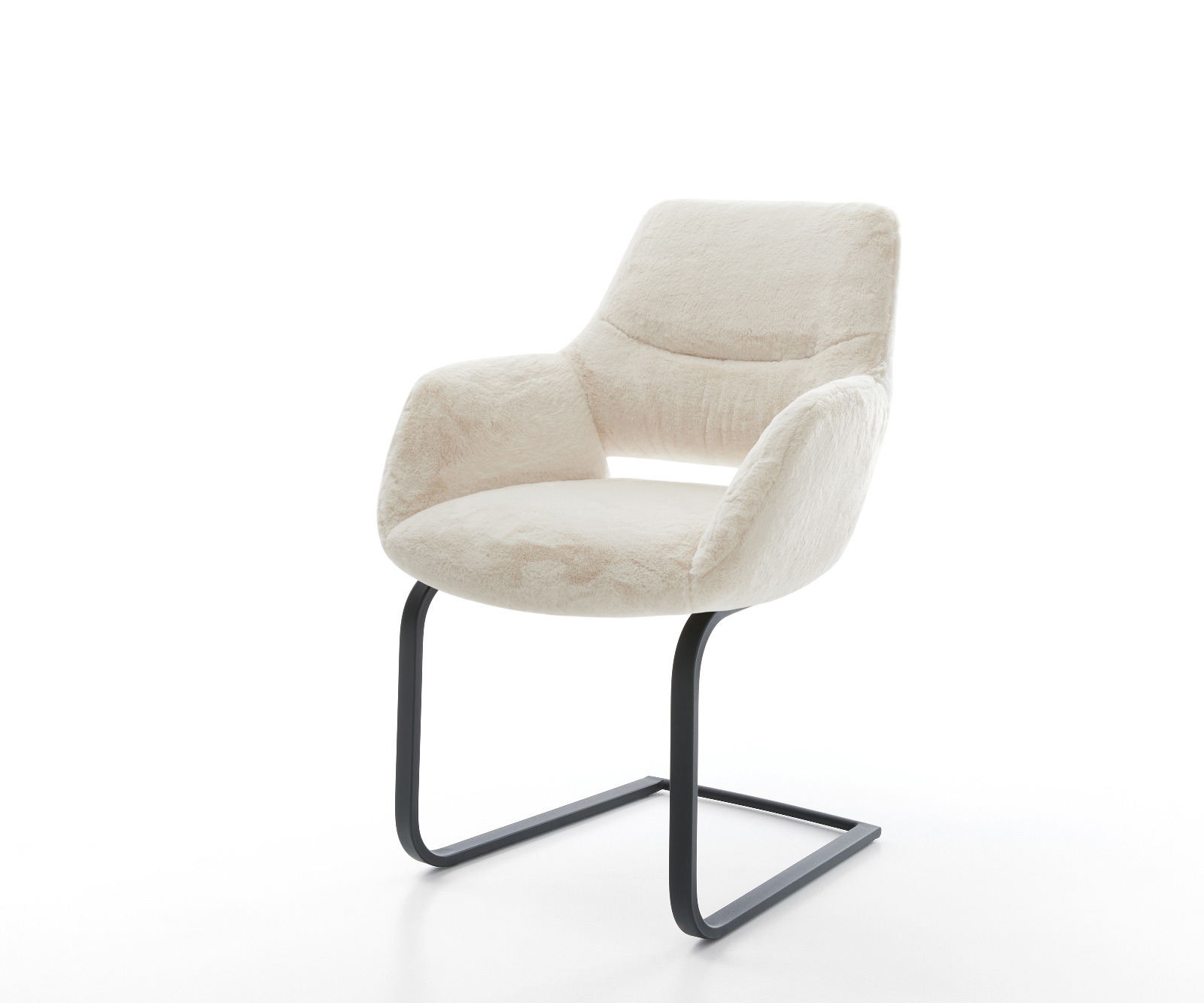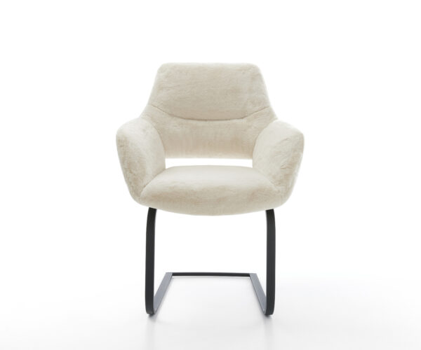 Ušľachtilý plyšový poťah v jemnej krémovo-bielej farbe dodáva stoličke obzvlášť elegantnú charizmu. Mäkký povrch poskytuje najvyšší komfort sedenia – ideálne pre moderné jedálne a obytné priestory s kvalitným zariadením.