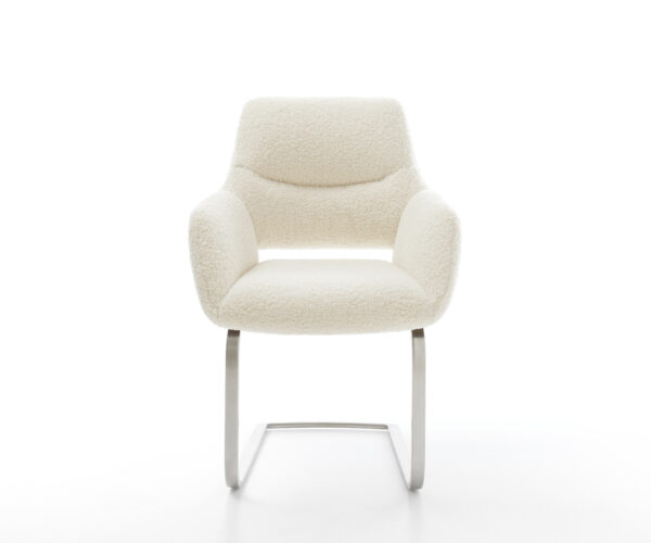 Potiahnutá mäkkou teddy látkou v béžovej farbe, ktorá zabezpečuje obzvlášť príjemný pocit pri sedení. Mäkká látka prináša pohodlie a štýl k jedálenskému stolu – ideálne pre útulnú atmosféru.