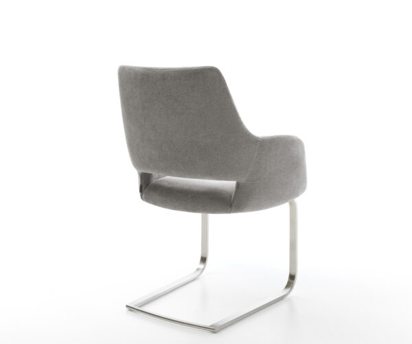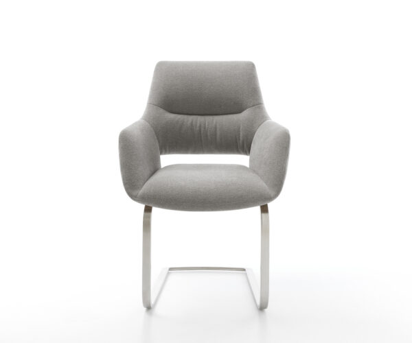 Konzolová jedálenská stolička Yago-Flex s opierkami texturovaná látka mäkká sivá konzolová jedálenská stolička plochá nerezová oceľ vrecková pružina