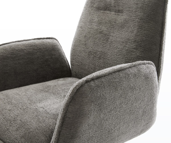 Táto stolička zaujme kvalitným poťahom z bouclé v teplom tmavobéžovom odtieni. Jemná štruktúra a pokojná farba dodávajú nábytku modernú, útulnú charizmu – ideálne do jedálne alebo čitateľského kútika.