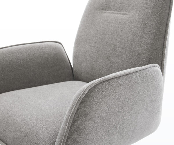 Robustná texturovaná látka v jemnej sivej farbe nie je len odolná, ale zabezpečuje aj decentný, štýlový vzhľad. Ideálna pre intenzívne využívané jedálenské priestory s požiadavkou na dizajn a každodennú praktickosť.