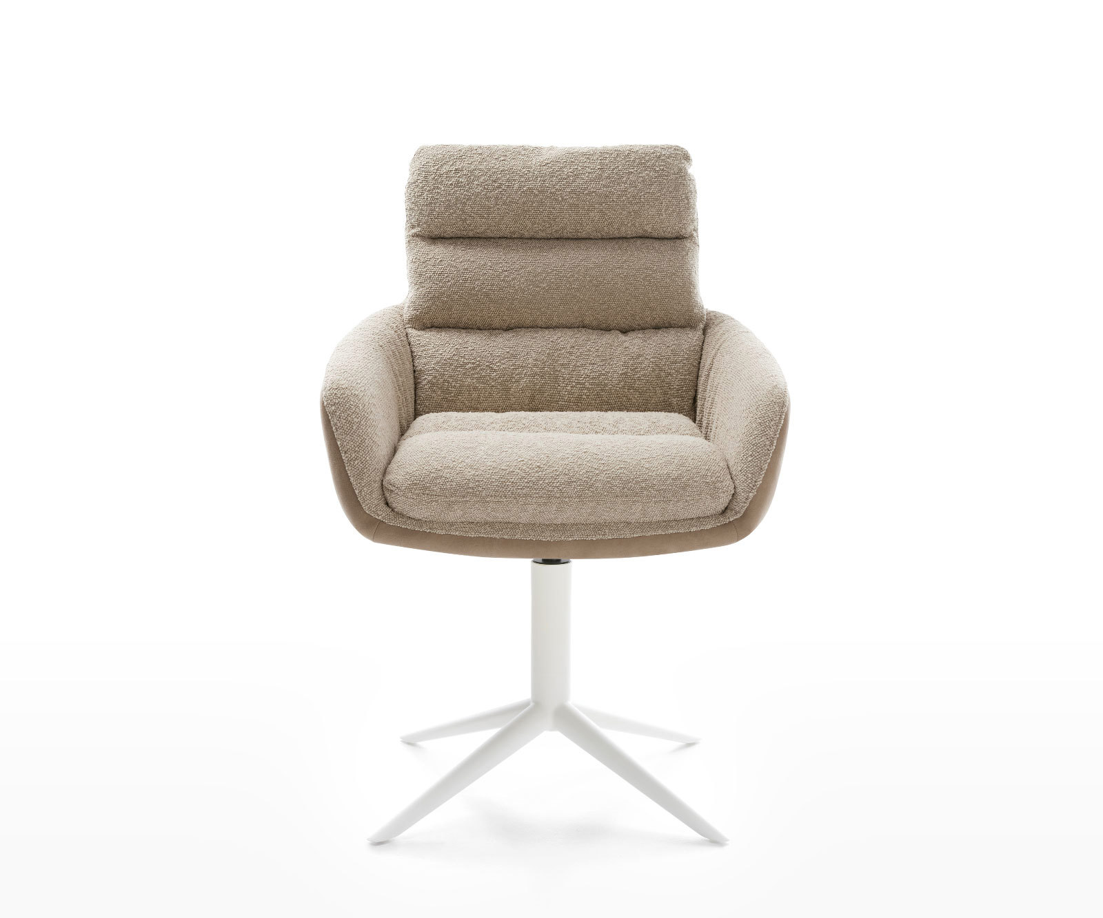 Zaujímavá kombinácia materiálov z mikrovlákna na vonkajšej strane a bouclé robí z tejto jedálenskej stoličky skutočný must-have v každej vkusne zariadenej jedálni. Použitie dvoch materiálov je vizuálne mimoriadne príťažlivé, či už ako samostatný kus alebo ako súčasť sedenia.