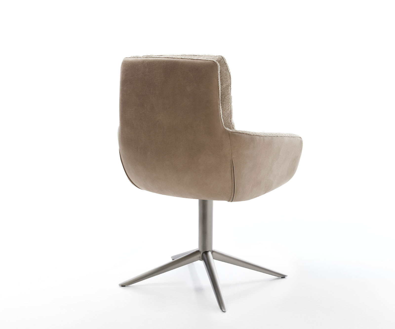 Zaujímavá kombinácia materiálov z mikrovlákna na vonkajšej strane a bouclé robí z tejto jedálenskej stoličky skutočný must-have v každej vkusne zariadenej jedálni. Použitie dvoch materiálov je vizuálne obzvlášť príťažlivé, či už ako samostatný kus alebo ako súčasť sedenia.