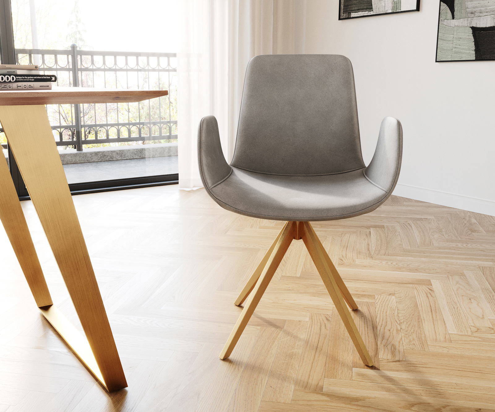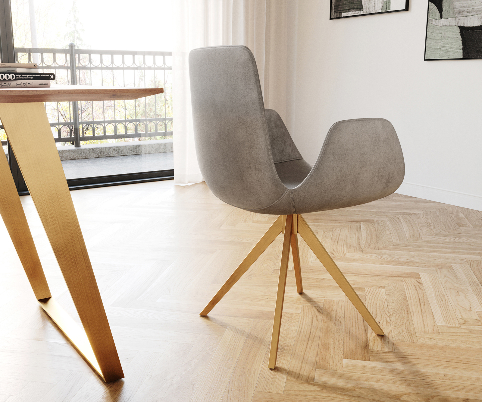Šikovná krížová podstava s praktickou spätnou funkciou zabezpečuje nielen mimoriadnu stabilitu, ale umožňuje aj otočenie až do 180 stupňov. Neoceniteľné, keď chcete venovať plnú pozornosť viacerým hosťom pri stole zároveň.