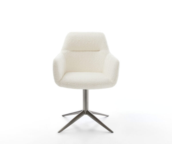 Elegantná látka bouclé je obzvlášť mäkká a príjemná na dotyk, zároveň však odolná a nenáročná na údržbu. Žiari v teplom bielom odtieni a v každej jedálni vytvára nadčasovo pekné akcenty.