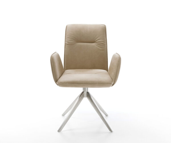 Otočná jedálenská stolička Vinja-Flex mikrovlákno béžová vintage krížová podstava široká nerezová oceľ 360° otočná hojdacia funkcia