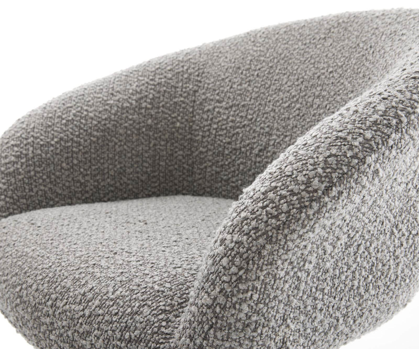Bouclé látka v aktuálnej strieborno-sivej farbe je vďaka svojej hrubozrnnej štruktúre skutočným lákadlom pre oči, ktoré zaujme príjemným dotykom.