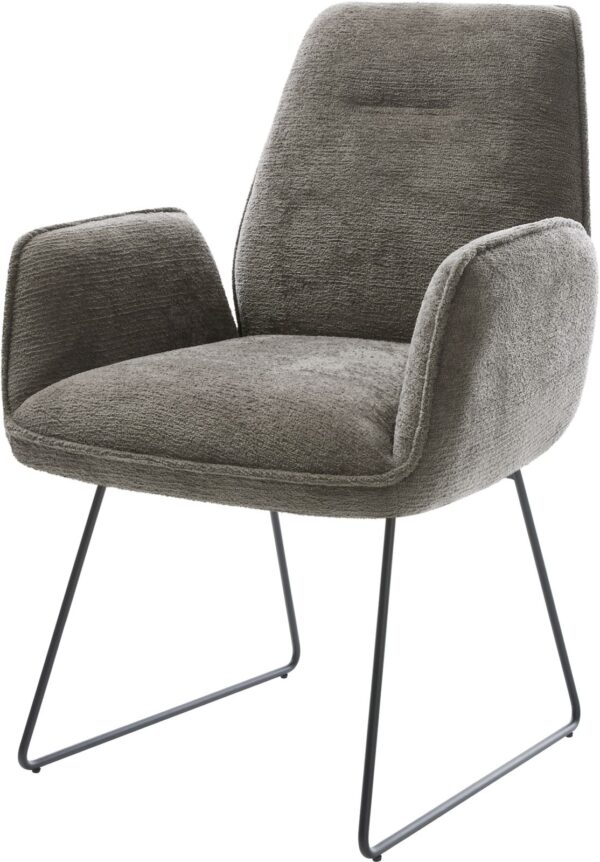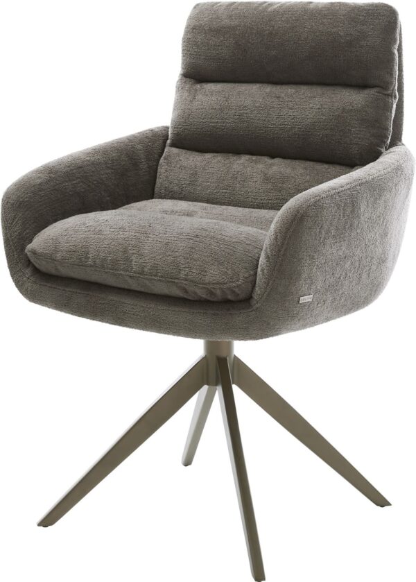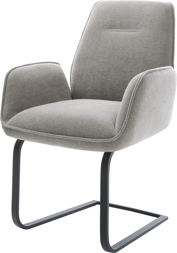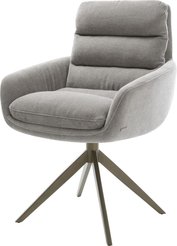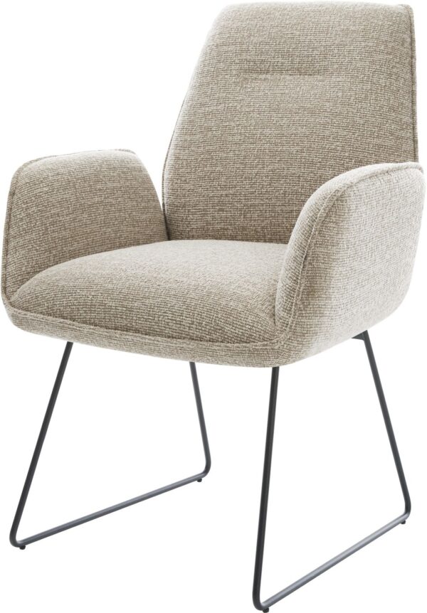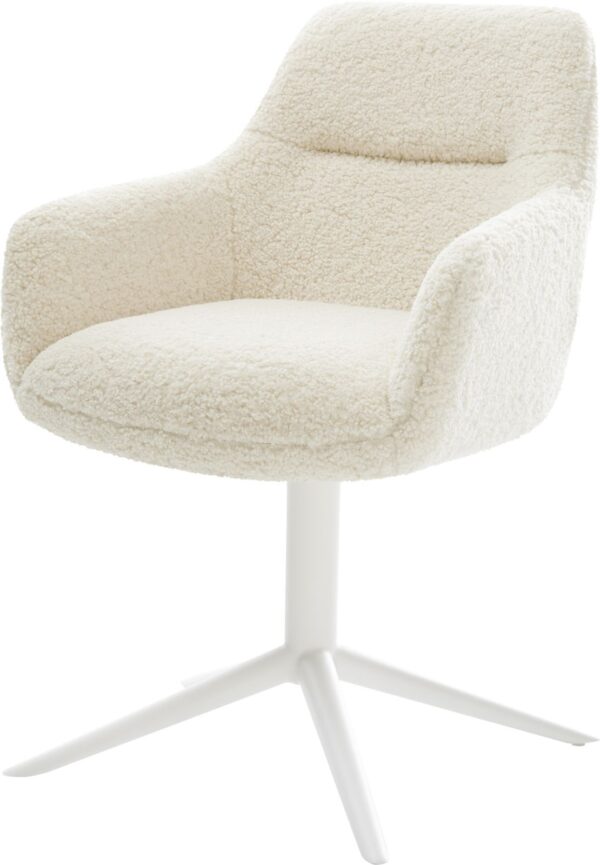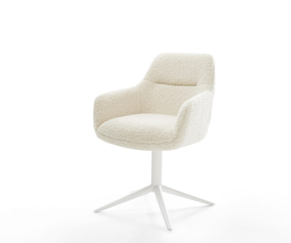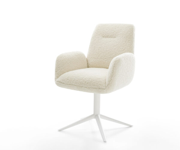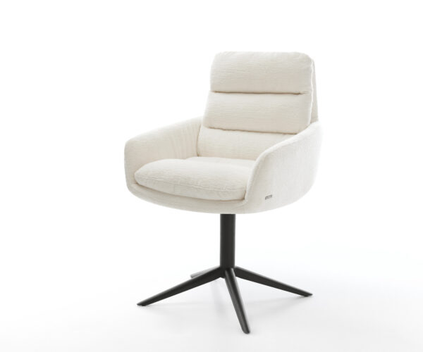 Jedálenská stolička Abelia-Flex s opierkami bouclé mäkká béžová krížová podstava široká čierna 360° otočná hojdacia funkcia