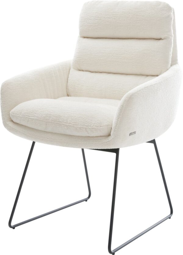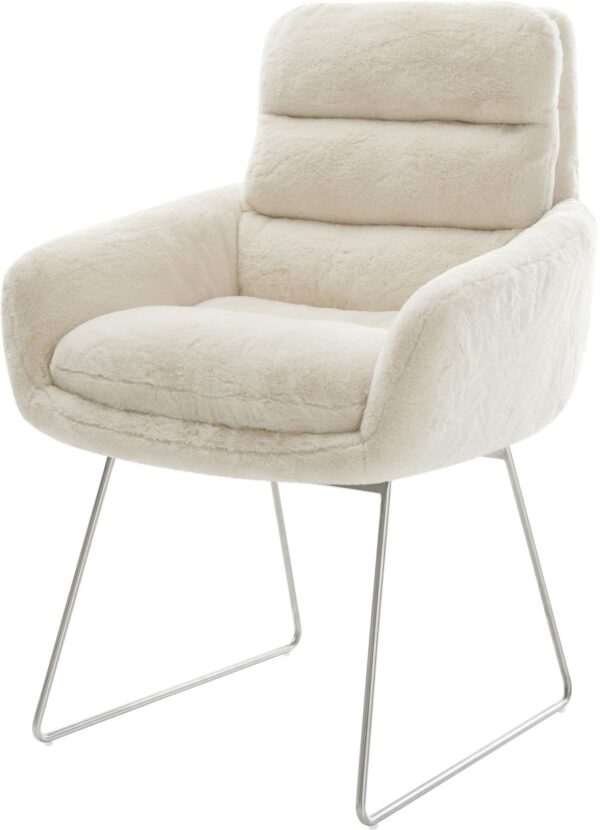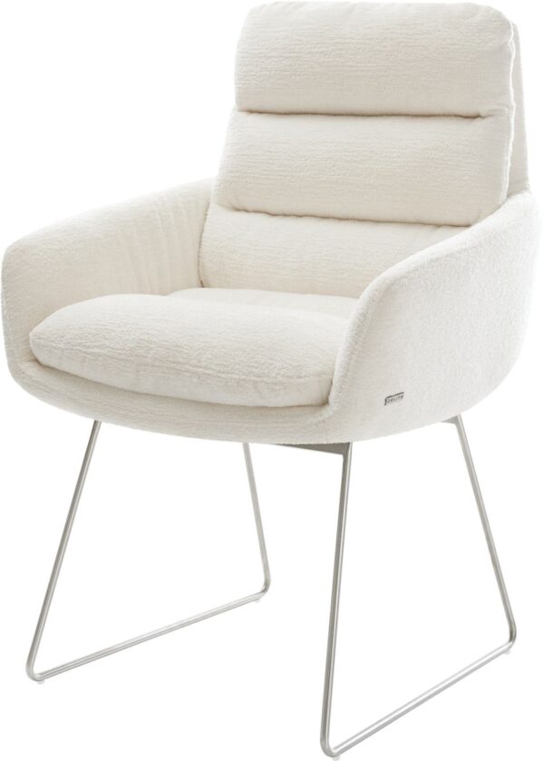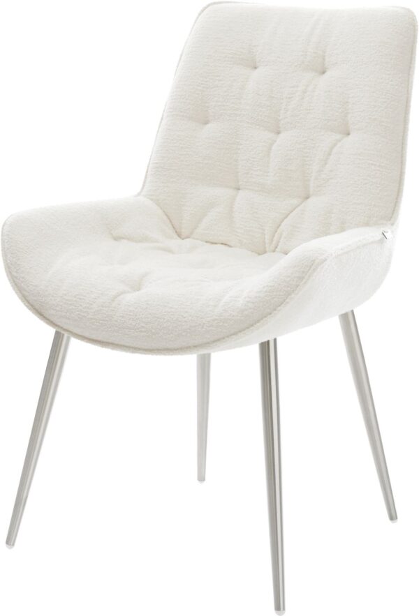 Jedálenská stolička Taimi-Flex bouclé mäkký béžová 4-nohá zúžená nerezová oceľ