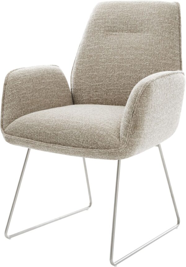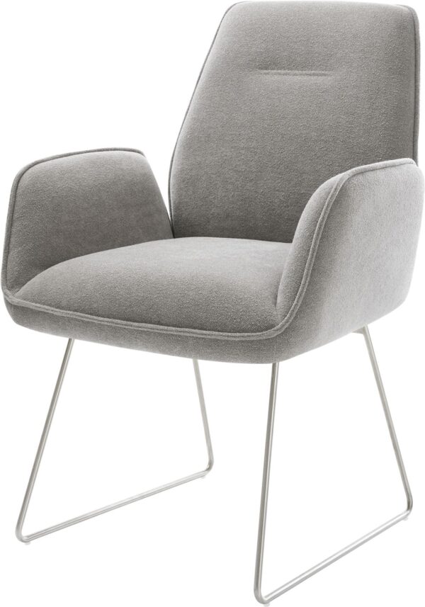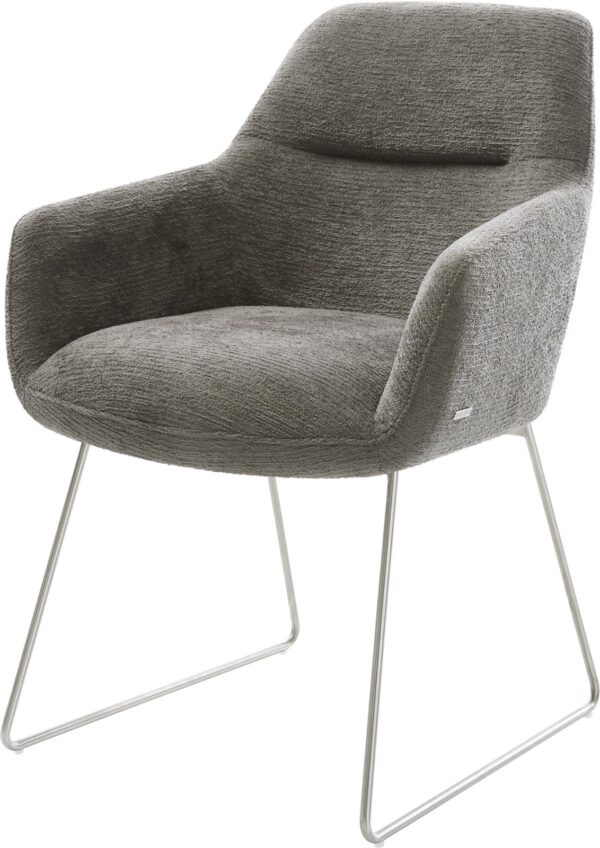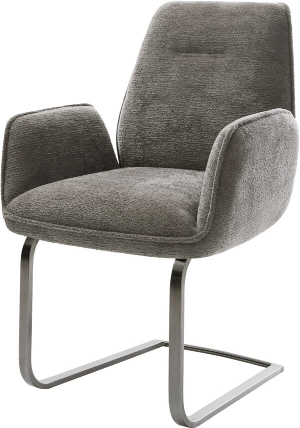 Jedálenská stolička Zoa-Flex štruktúrovaná látka mäkký sivá tenká podstava nerezová oceľ vrecková pružina