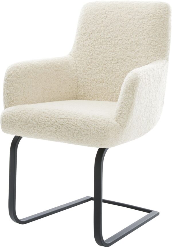 Konzolová jedálenská stolička Vinka-Flex s opierkami bouclé mäkký béžová konzolová jedálenská stolička plochá čierna vrecková pružina