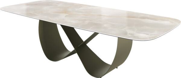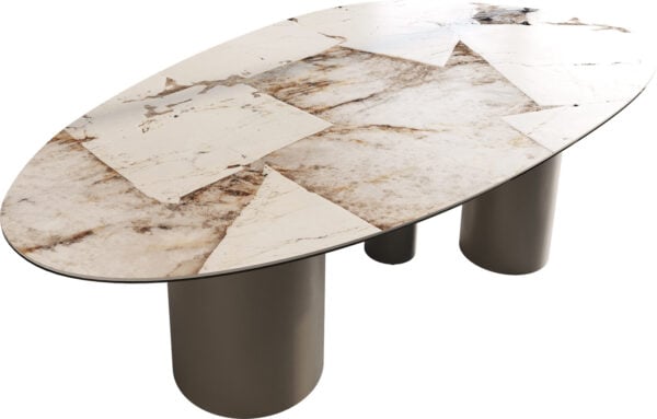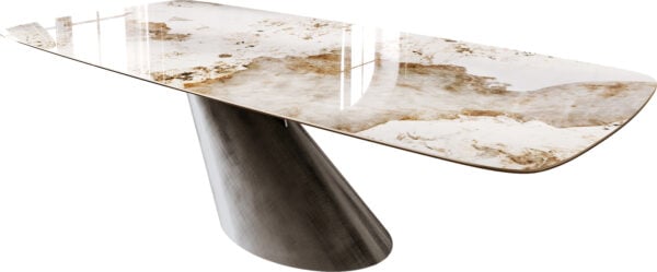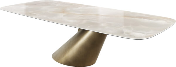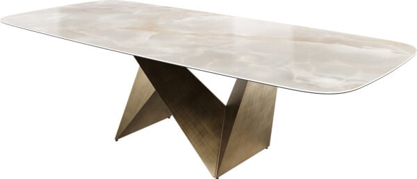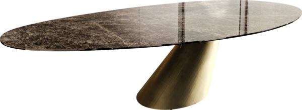 Jedálenský stôl Edge 300x100 keramika emperador extra lucidato tmavohnedá parabolický metalická zlatá