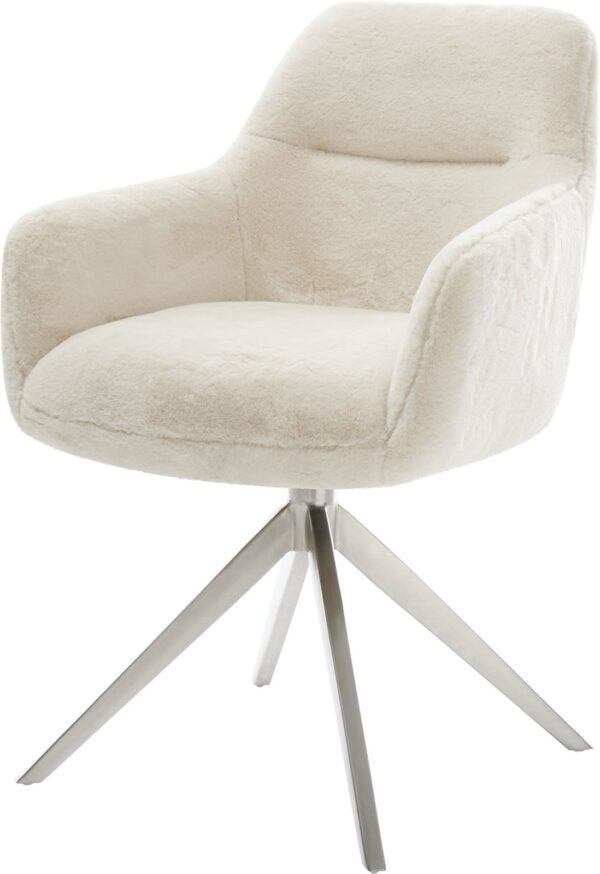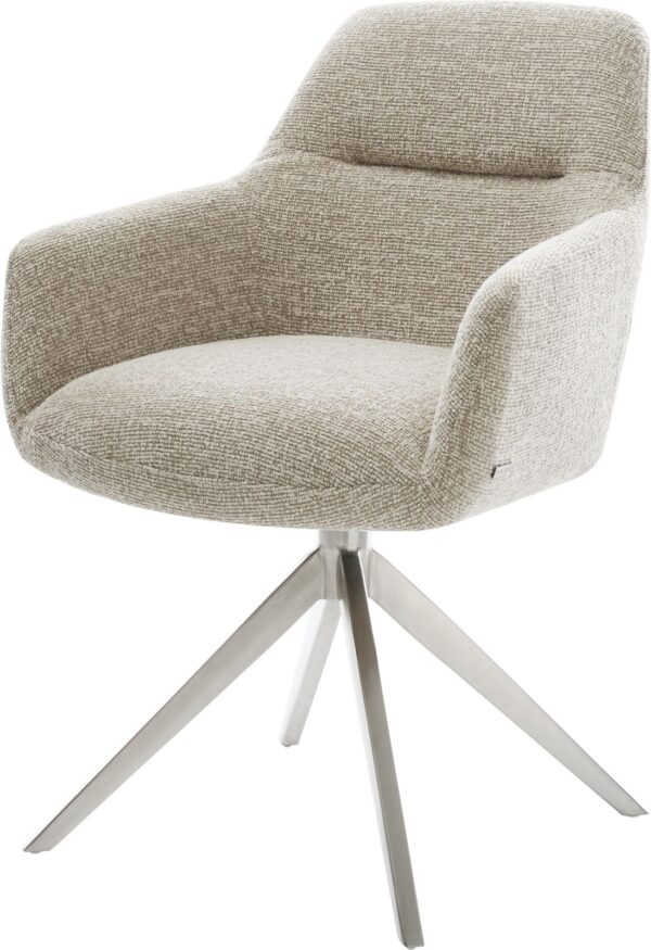 Jedálenská stolička Vinka-Flex s opierkami tkanina mäkká béžová krížová podstava široká nerezová oceľ 360° otočný hojdacia funkcia vrecková pružina