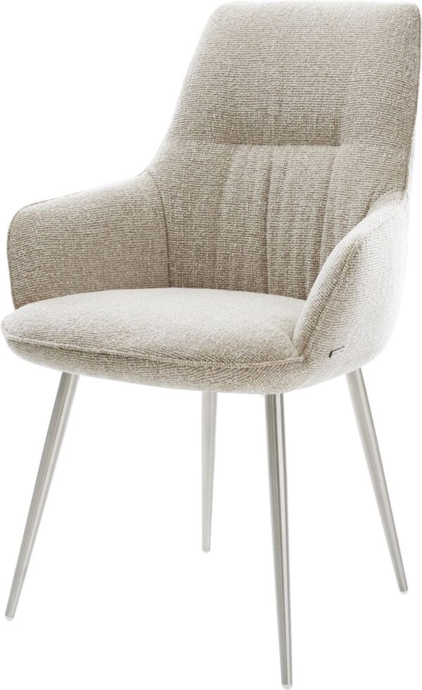 Jedálenská stolička Zelia-Flex s opierkami bouclé mäkký tmavobéžová 4-nohá zúžená čierna vrecková pružina