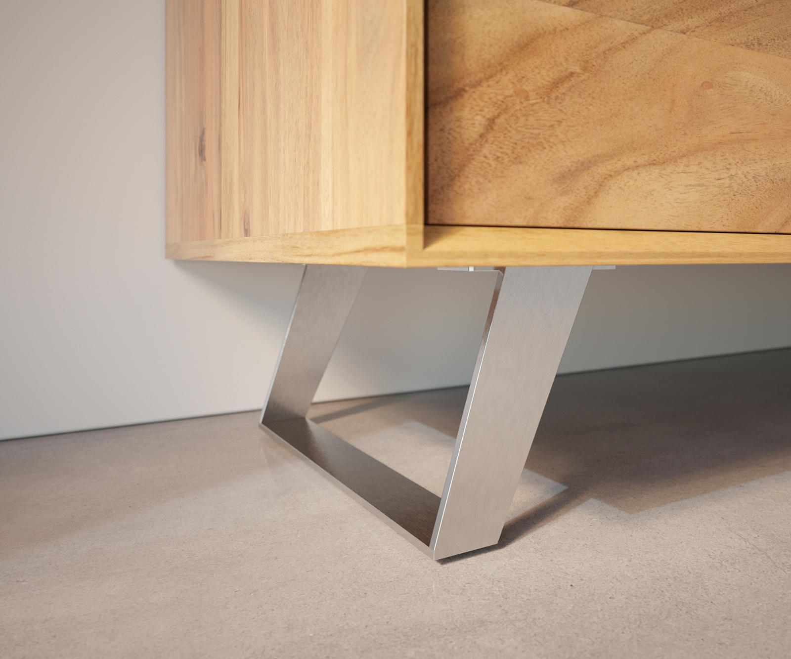 Minimalistické podnože v tvare uhla zo striebornej nerezovej ocele dodávajú každému DELIFE skrinkovému nábytku pôsobivo moderný vzhľad.