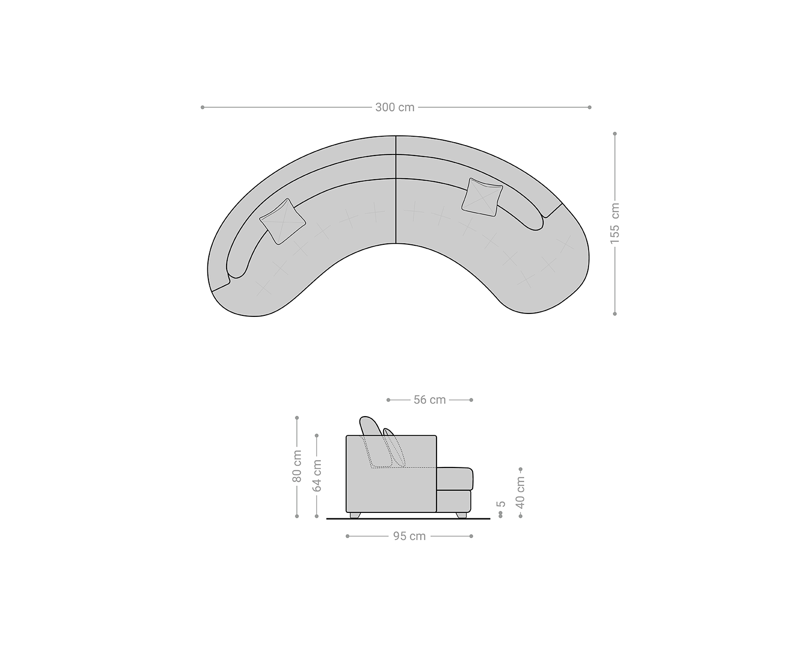 Naša pohovka Napoli je mimoriadne pekný dizajnový nábytok. Oblý tvar korpusu pôsobí veľmi moderne a elegantne. Navyše sú operadlo a sedacia plocha vizuálne príťažlivo prešívané a vyhotovené zo sivobielej štruktúrovanej látky.