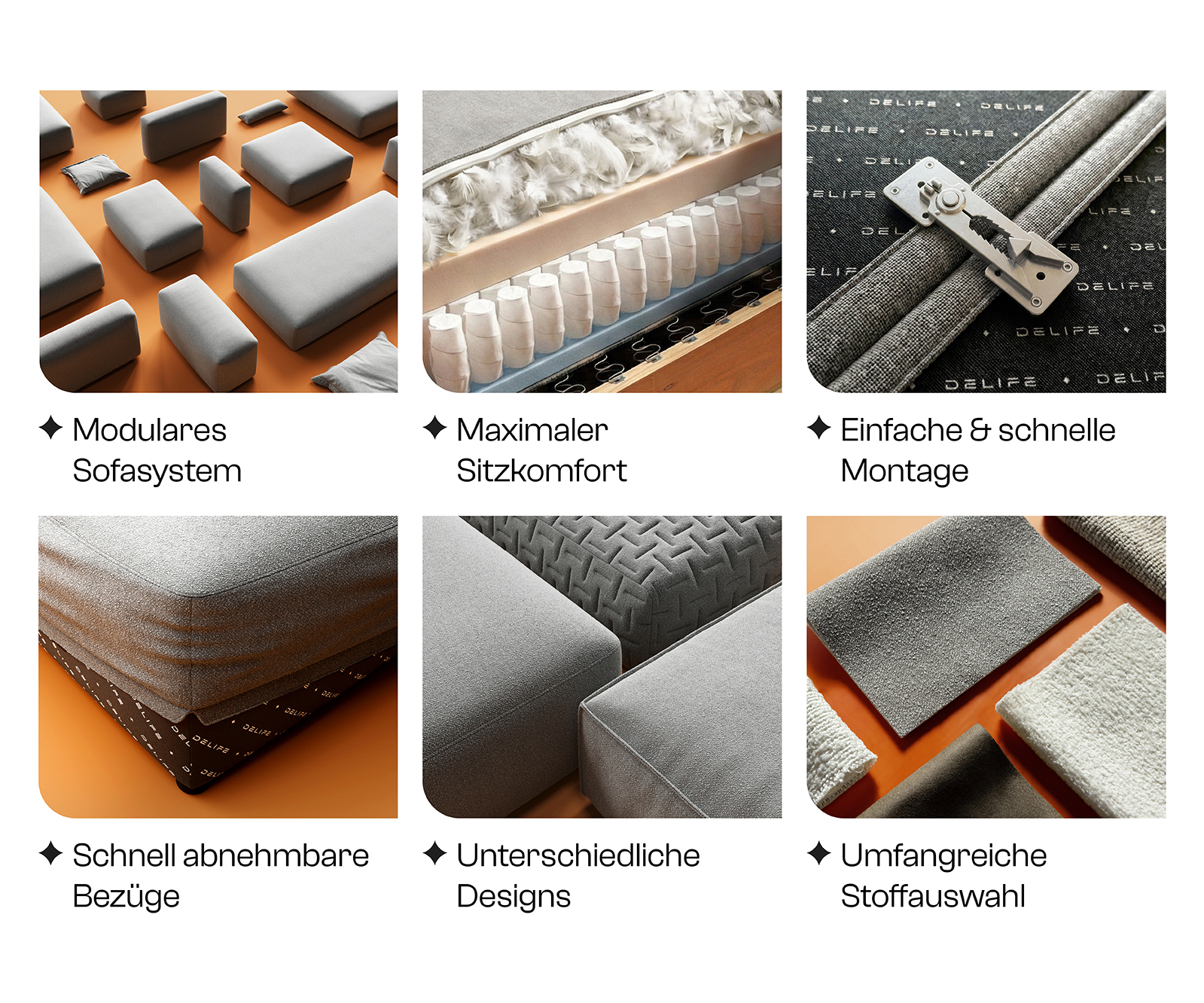 Modulárny koncept ti dáva úplnú slobodu. Môžeš pohovku kedykoľvek zväčšiť, pridať nové moduly alebo kombinovať s inými dizajnmi – napríklad s prešívaním Kappnaht alebo lemovaním Kedernaht. Poťahy sú odnímateľné a v prípade potreby ich môžeš doobjednať. Tvoj gauč tak zostane dlhodobo aktuálny, ľahko sa prispôsobí tvojmu štýlu a zároveň predstavuje znak udržateľnosti.