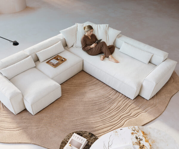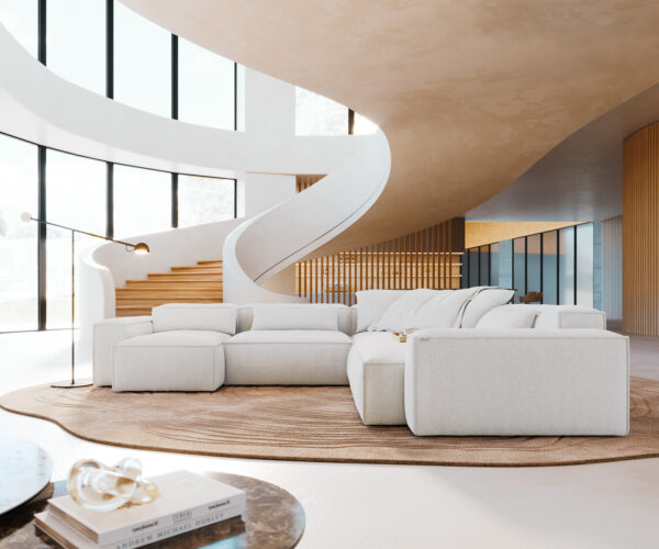 Pohovka v tvare „U“ Freestyle nie je len obyčajná pohovka, ktorú si jednoducho kúpiš – je to pohovka, ktorú si vytvoríš sám. S príjemne mäkkým Bouclé Soft Beige a charakteristickým povrchom dotvára celkový dojem lemovanie švov: umelecky prepracovaná kontúra s lemovaním vytvára jemné akcenty a dáva pohovke hodnotnú, klasicky elegantnú líniu. Tak vzniká útočisko, ktoré prináša do tvojho domova teplo a pokoj.