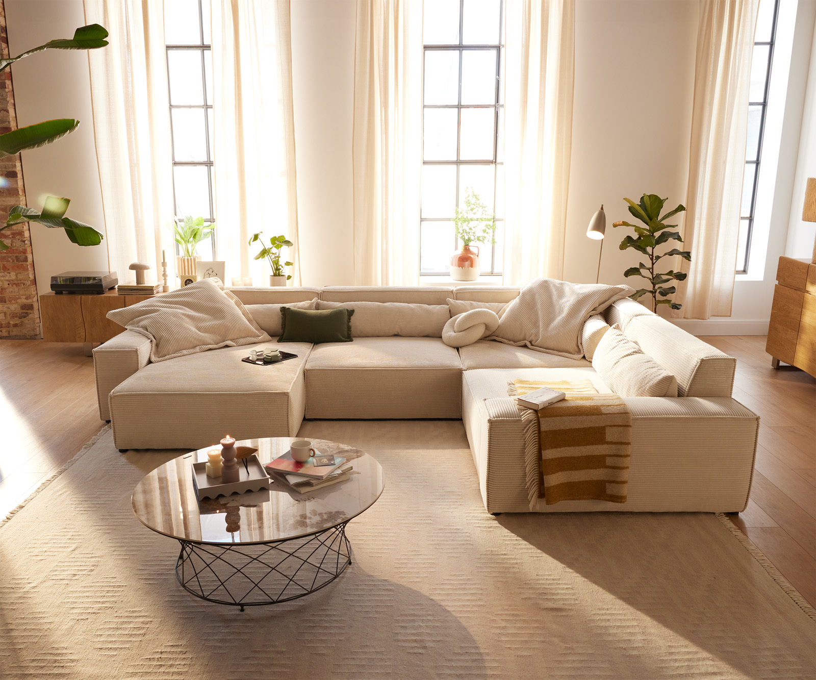 Krásna manšestrová látka v svetlej béžovej farbe dodáva Sirpiu mimoriadne prívetivý vzhľad. Pre výnimočný komfort sedenia sa stará mäkké čalúnenie a obzvlášť kvalitné pruženie. Množstvo voľných vankúšov a elegantne široké opierky rúk robia z tohto jedinečného dizajnového kúsku pohodlný a výnimočne krásny stredobod vášho domova.