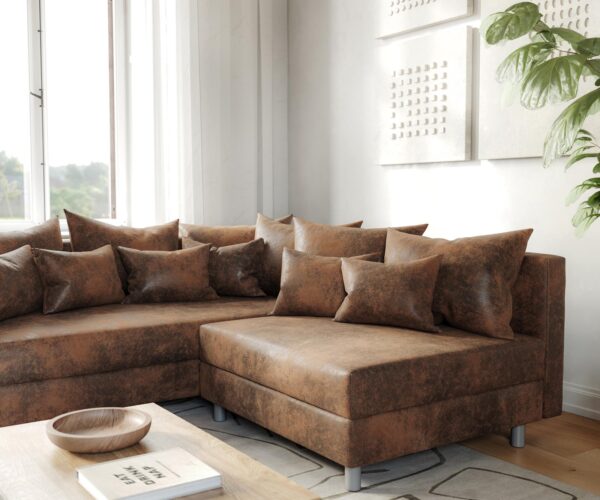 Rohová pohovka Clovis v antickej hnedej – vhodná do každej obývačky