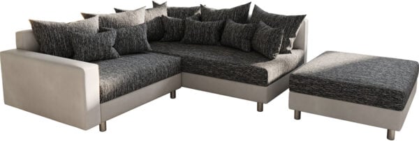 Šesť veľkých vankúšov zaručuje výborné pohodlie, rovnaký počet menších dekoratívnych vankúšikov umožňuje individuálne prispôsobenie útulnosti. Jednoducho udržiavateľná štruktúrovaná látka pokrýva čalúnenie aj vankúše. K príťažlivému celkovému vzhľadu vám rohová pohovka ponúka modernú flexibilitu, pretože je modulárne navrhnutá a umožňuje individuálne usporiadanie jednotlivých dielov.