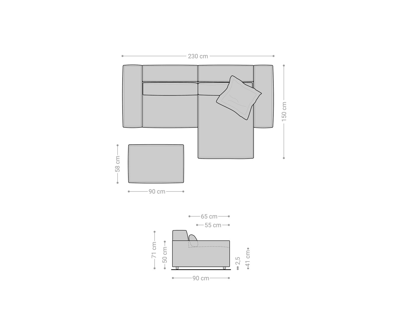 - Rozmery ležadla cca: Š90 x H150 x V71 cm