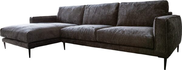 Nielen sedacia plocha strednej časti a pravého ležadla (recamiere), ale aj operadlo je čalúnené, čo zabezpečuje príjemný pocit pri opretí. Čierne kovové nohy prispievajú k vysokej estetike a dokonale dopĺňajú poťah z šedého šenilu (chenille). Jemné lemovacie švy na opierkach rúk vytvárajú štýlové akcenty. Či už preferujete útulný hygge štýl alebo trendy retro vzhľad, pohovka sa hodí takmer ku každému zariadeniu a ľahko sa kombinuje. Obzvlášť komfortné čalúnenie sa vyznačuje veľmi mäkkým povrchom, ktorý sa prispôsobuje tvaru tela a umožňuje ti sedieť ako na obláčiku.