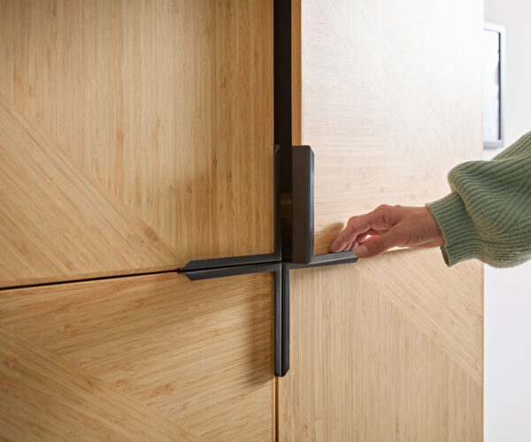 Obohať svoj domov našou jedinečnou skriňou Highboard, ktorá dokonale spája prírodné materiály a moderný dizajn. So šírkou 90 cm a výškou 150 cm ponúka veľa miesta pre tvoje veci a zaujme svojím exkluzívnym dizajnom. Čelá sú dyhované pravým bambusom prírodnej farby a sú starostlivo ručne spracované do umeleckého vzoru, ktorý sa plynulo tiahne cez celú prednú časť a vytvára harmonickú jednotu. Čierny korpus z mangového dreva vyniká svojou hlboko štruktúrovanou kresbou a vytvára fascinujúci kontrast k prírodnému bambusovému čelu.