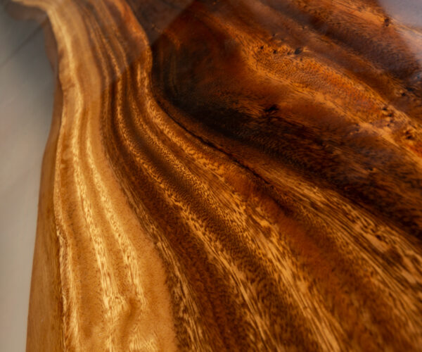 Remeselne kvalitné spracovanie a mimoriadny hmat zdôrazňujú individuálny charakter stolovej dosky. Akácia Suar je pretkaná špeciálnym efektom epoxidu, ktorý podčiarkuje prírodnosť a vytvára fascinujúci abstraktný vzhľad. Táto stolová doska obohacuje každý priestor a vytvára exkluzívny akcent, ktorý sa výrazne odlišuje od bežných konceptov zariadenia.