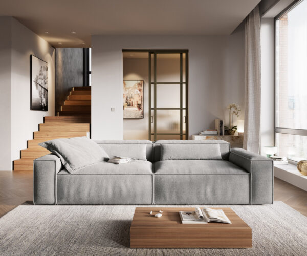 Modulárny koncept ti dáva úplnú slobodu. Môžeš obytnú zostavu kedykoľvek zväčšiť, pridať nové moduly alebo kombinovať s inými dizajnmi – napríklad Kappnaht alebo Kedernaht. Poťahy sú odnímateľné a v prípade potreby doobjednateľné. Tvoj nábytok tak zostane dlhodobo aktuálny, ľahko sa prispôsobí tvojmu štýlu a zároveň predstavuje znak udržateľnosti.