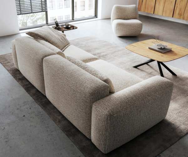 Modulárny koncept ti dáva úplnú slobodu. Môžeš obytnú krajinu kedykoľvek zväčšiť, pridať nové moduly alebo kombinovať s inými dizajnmi – napríklad Kappnaht alebo Kedernaht. Poťahy sú odnímateľné a v prípade potreby ich možno dokúpiť. Tvoj nábytok tak zostane dlho aktuálny, ľahko sa prispôsobí tvojmu štýlu a zároveň predstavuje znak udržateľnosti.