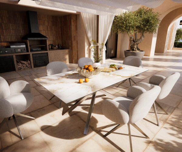 - Stolová doska je vyrobená z jedného celistvého keramického plátu, ktorý jej dodáva jedinečnosť v harmonickom celku.