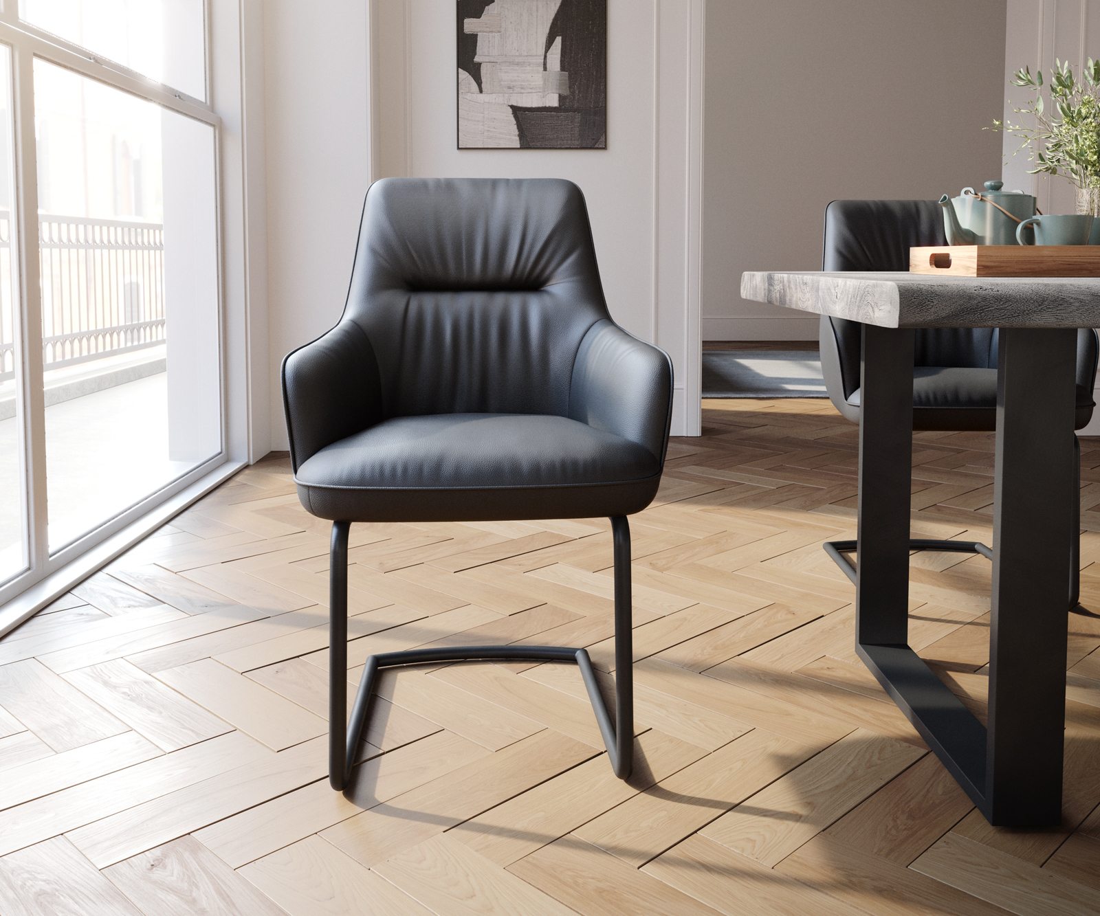 Jedálenská stolička Zelia s opierkami pravá koža čierna – stoličkový systém od DELIFE